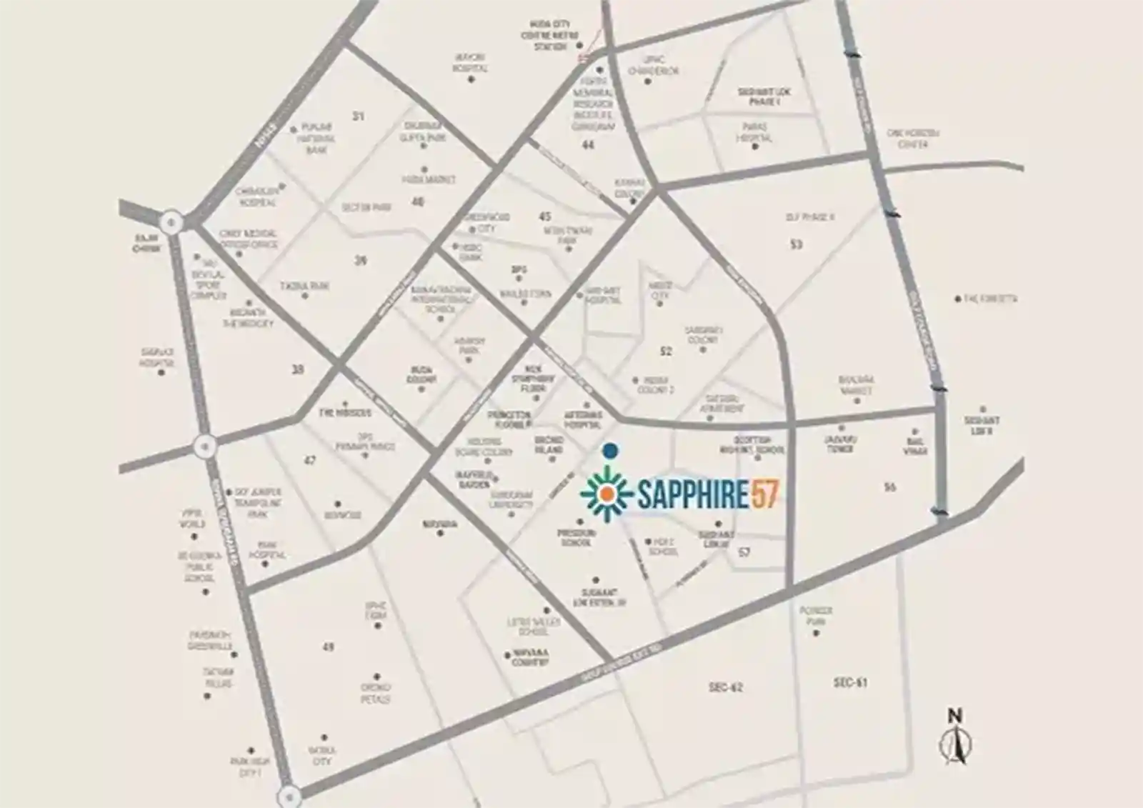 Ameya Sector 57 Gurgaon is located near landmarks like Golf Course Extension Road, MG Road, and Huda City Centre Metro. This prime location ensures easy accessibility and convenience for all your business needs.