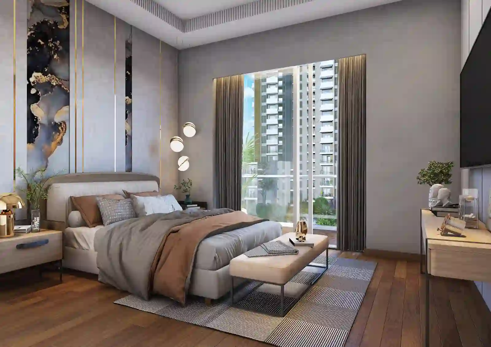 Emaar Urban Oasis 2BHK apartment features a comprehensive 5-level security system with smart locks, ensuring your safety and peace of mind. It also includes eco-friendly EV charging stations and a VRF air-conditioning system. Every detail is designed to enhance your living experience.