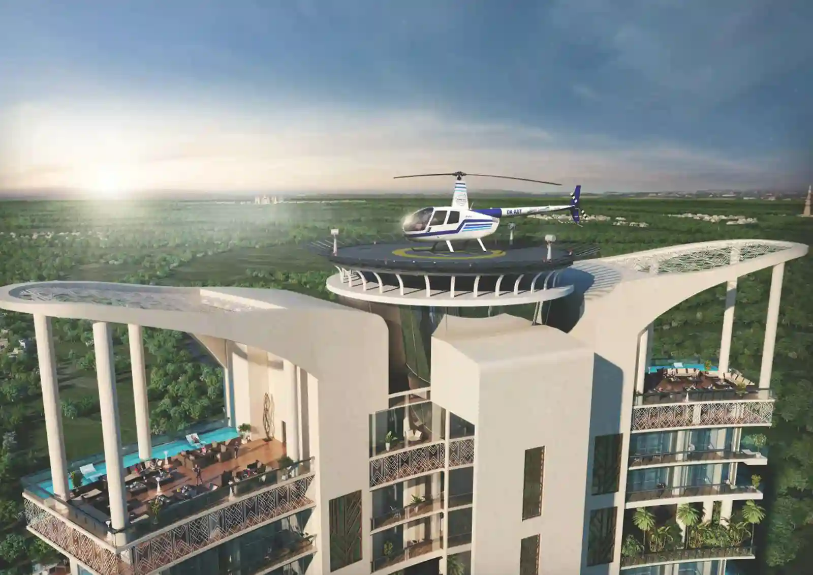 One of the standout features of The Leela Sky Villas is its status as the tallest residential building in Delhi. The project includes India's highest glass-bottom pool and a helipad restaurant, providing breathtaking views of the city. Additionally, it is the first residential project in India to feature an underground nuclear bunker, emphasizing safety and preparedness.